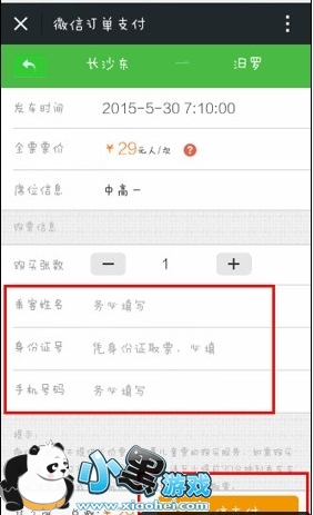 4、我们就就可以看到有很多的票源,大家可以选择你要出发的时间买票,进入支付页面后大家填好你的真实姓名、身份证号、手机号码点击“微信支付”。