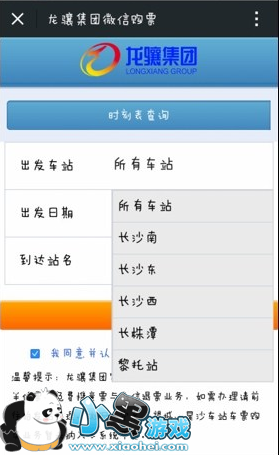 2、然后在“龙骧集团微信购票”购票界面,选择一个起始站,如图所示。