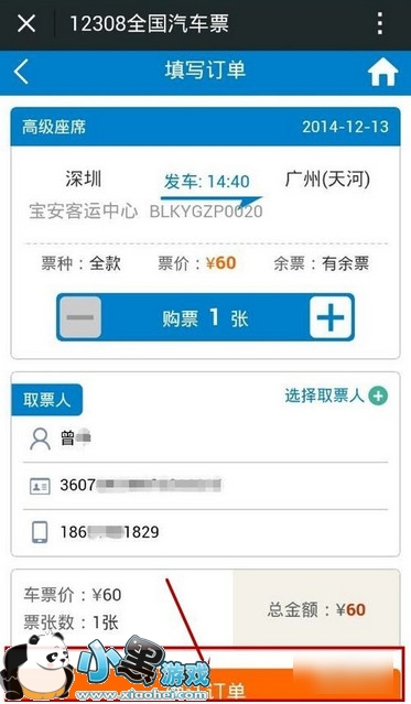 点击之后,就会跳转到取票信息页面,这里可以查看订单信息,取票信息。到时候,根据这里的信息,乘车时带上身份证到车站窗口或者自助取票机,取票,然后就可以直接上车啦。(此步骤图片仅作为演示用,实际应付60元)
