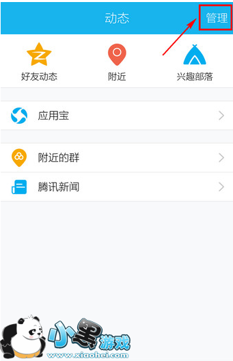 2、这里有【腾讯新闻】,就说明有推送,可以查看更详细内容。但是我们是关掉它,这时点击右上角的【管理】