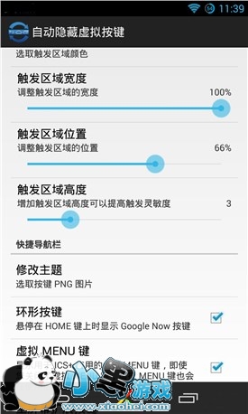 GMD的设置很是丰富,每一项的功能比都可以进行自定义调整。除了隐藏虚拟按键之外,我们还可以对虚拟按键进行外观设置,内置多套主题选择的同时,还支持自定义图片设置,个性十足!由于每个人的使用习惯都不一样,小编也不必强调某些设置的重要性。在文章的最后,会附上小编在使用GMD这款应用的些许设置,希望能给各位同学做一个参考!