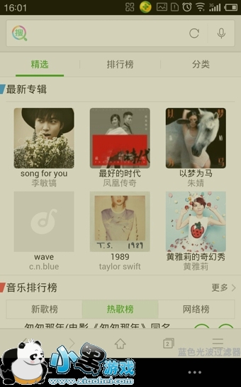 2、然后就可以看到音乐这一项,分为精选、排行榜、分类这三项,同样有很多的专题,看起来是不是和XX播放器差不多呢。