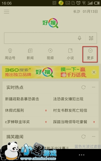 1、打开好搜之后,在搜索栏下面的更多,点击进去