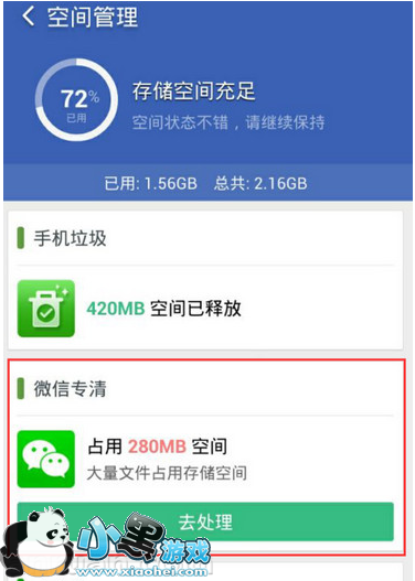 1、打开猎豹清理大师,在左上角点击“存储空间”,进入空间管理,找到“微信专清”功能,点击“去处理