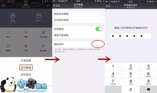3、微信客户端6.2版本、绑过卡的微信支付用户、开通微信指纹支付才可使用。