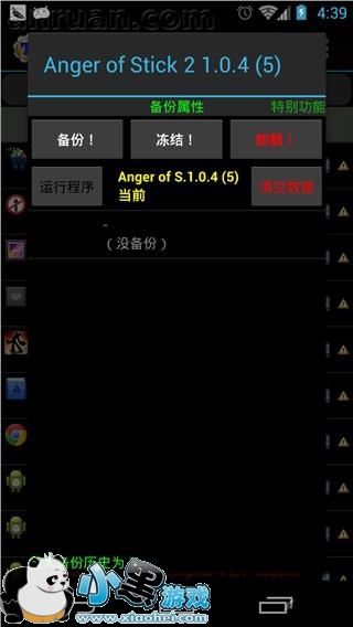 我们可以尝试点击任意一款程序看看二级弹出窗口。钛备份自带中文,操作起来直观明了。值得一提的是你可以备份通讯录(联系人)、短信等等内容。