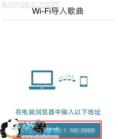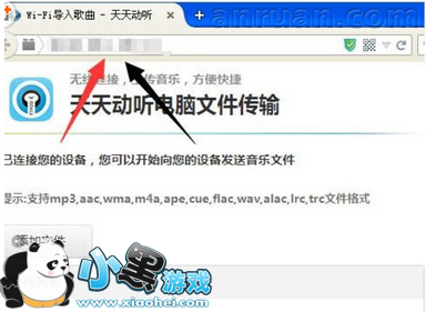 3、打开WiFi导入歌曲,屏幕下面出现一个IP访问地址,在电脑浏览器上面打出来,就可以看到文件传输界面。