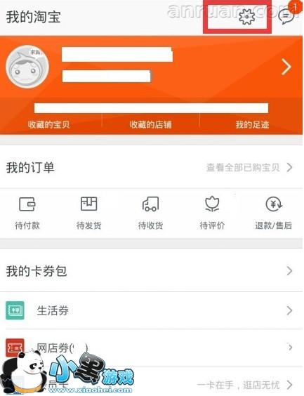 1、进入到手机淘宝中的“我的淘宝”并打开右上方的“设置”