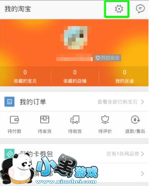 2、进入我的淘宝页面,点击页面最上方的设置按钮’
