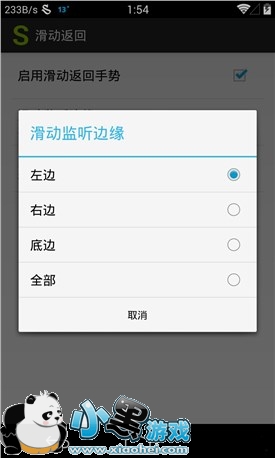 相较于前几天的测试版而言,本次正式发布的 1.0.1 版本提供了可视化的设置界面,我们可以在不重启手机的情况下随时随地启用/停用 SwipeBack 滑动返回功能。SwipeBack 提供了左滑、右滑、上滑 3 种返回手势,用户可以在「滑动监听边缘」里调节。