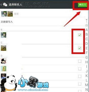3、进入以后,看到的是你的通讯录,选择你要拉黑的对象,数量暂时没有上限,选好以后确定即可。