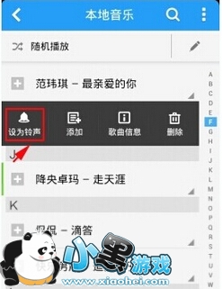 2、进入本地音乐以后,选择你想要作为手机铃声的歌曲,直接点击右下方的符号: