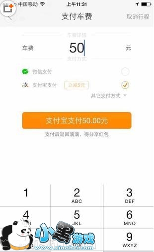 滴滴打车用支付宝付款流程