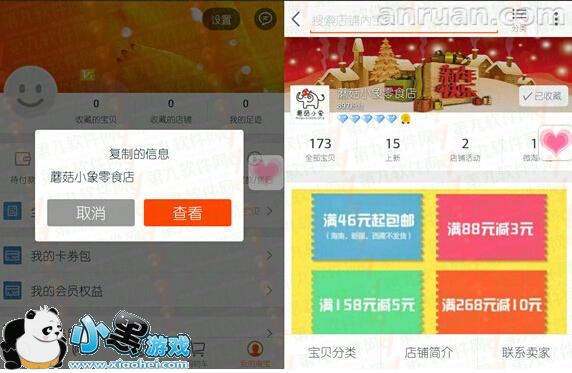 3、复制好以后,我们立刻打开手机上的手机淘宝,就会自动弹出复制的信息点击【查看】即可进入店铺商品页面,如果没有弹出稍微切换目录栏,根据手机速度快慢显示出来,所以小伙伴们知道为什么要下载最新版了吧。
