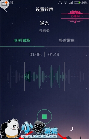 在设置的时候,你也可以手动通过拖动音频来选择,让这首歌从更往前或更后面的地方开始播放,同样地可以点击下方的播放键试试效果,你可以将它设置为来电铃声,也可以设置为闹钟铃声。