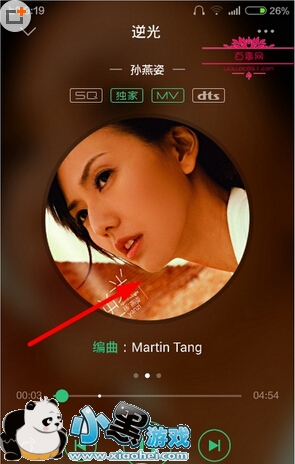 1、在小黑市场下载好手机QQ音乐,进入手机QQ音乐后,播放你要设置为铃声的歌曲,打开播放界面,点击歌曲中央的部分,如下图所示。