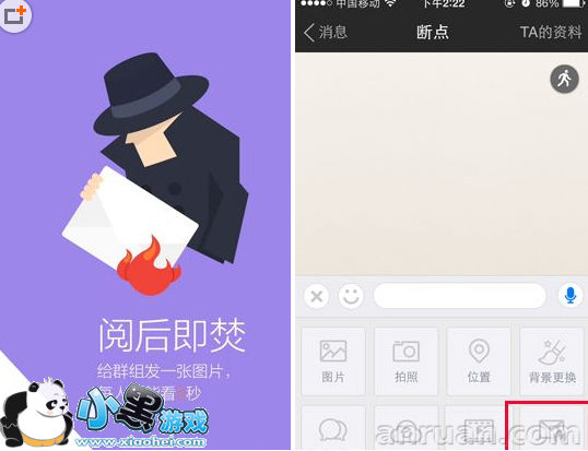 1、在小黑市场下载好陌陌,下载安装好之后打开陌陌,进入后找一个好友,进入对话框后,点击【阅后即焚】。