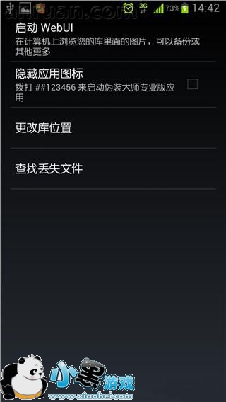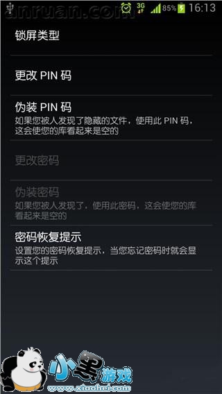另外还有个贴心的功能是伪装PIN密码,我们设置个伪装PIN密码,如果有人发现你的手机上有这个程序,也知道这个程序是干嘛的,要求你输入密码查看你隐藏的东东,你就输入这个伪装的PIN密码打开后会什么都看不到。还有些强大的功能就需要大伙自行研究了。