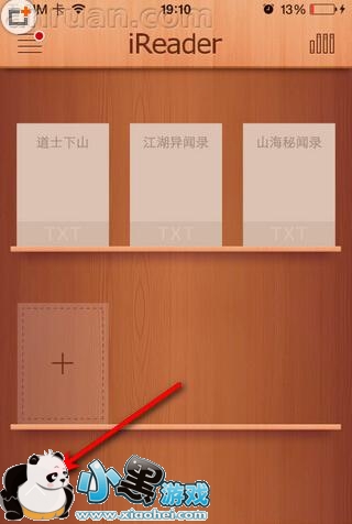 1、打开手机中的掌阅,进入书架,点击书架左下角的,如下图所示。