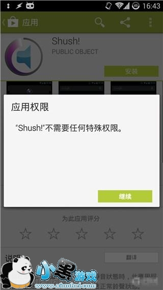 总的来说,Shush!是一款很贴心的应用,对于要上班、上课、开会以及其他需要临时关闭铃声的使用者来说,Shush!能带来极大的便利。而且Shush!仅对来电、短信铃声起作用,对闹钟铃声是无影响的,再加上是零权限,大家可以放心去用了。