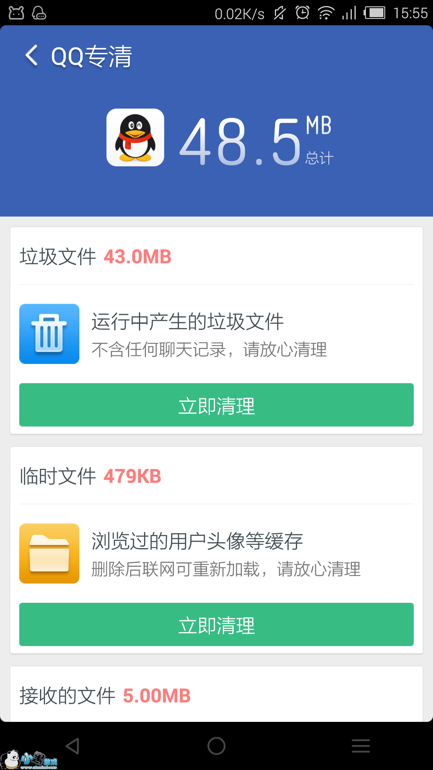 手机QQ作为大家常用的聊天工具之一。长时间使用就会有日常图片、文件、或者是聊天记录等等没必要存在的“多余文件”,猎豹清理大师在推出微信专清之后,为了体贴QQ用户,新加入了“QQ专清”功能,想来也是十分不错的。