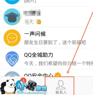 1.首先,进入手机QQ页面,点击下边的“联系人”。