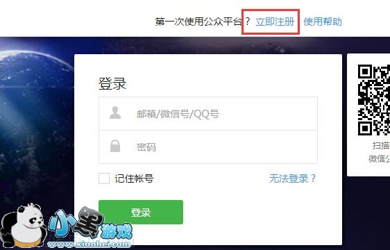 2、微信公众号需要我们重新注册账号,输入你的邮箱地址,和登陆微信公众平台的密码即可。