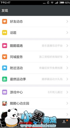 1、首先,我们确保安装的小黑市场的新版陌陌手机客户端,安装好以后,打开主界面,点击底栏的【发现】