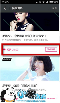 3、但是不乐观的是陌陌现场现在还在初级阶段,每天只有在20:00—24:00 的 4 个小时中有不间断直播,我们可以通过预约以后即使得收看直播,但是现场的效果,可能还是根据大家的耳机来决定。
