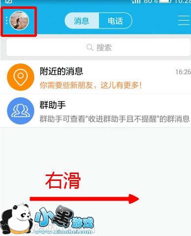 手机QQ拒收图片教程 1、首先我们打开QQ,然后点击头像。