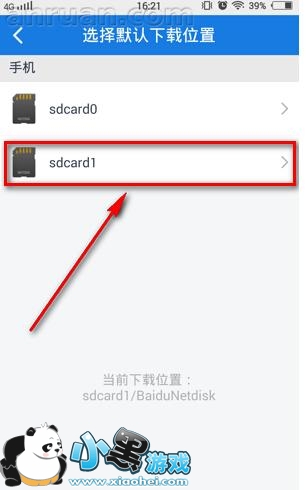 5、接下来小编举例将默认位置改到“sdcard1”(因为扩展卡的内存比较大)