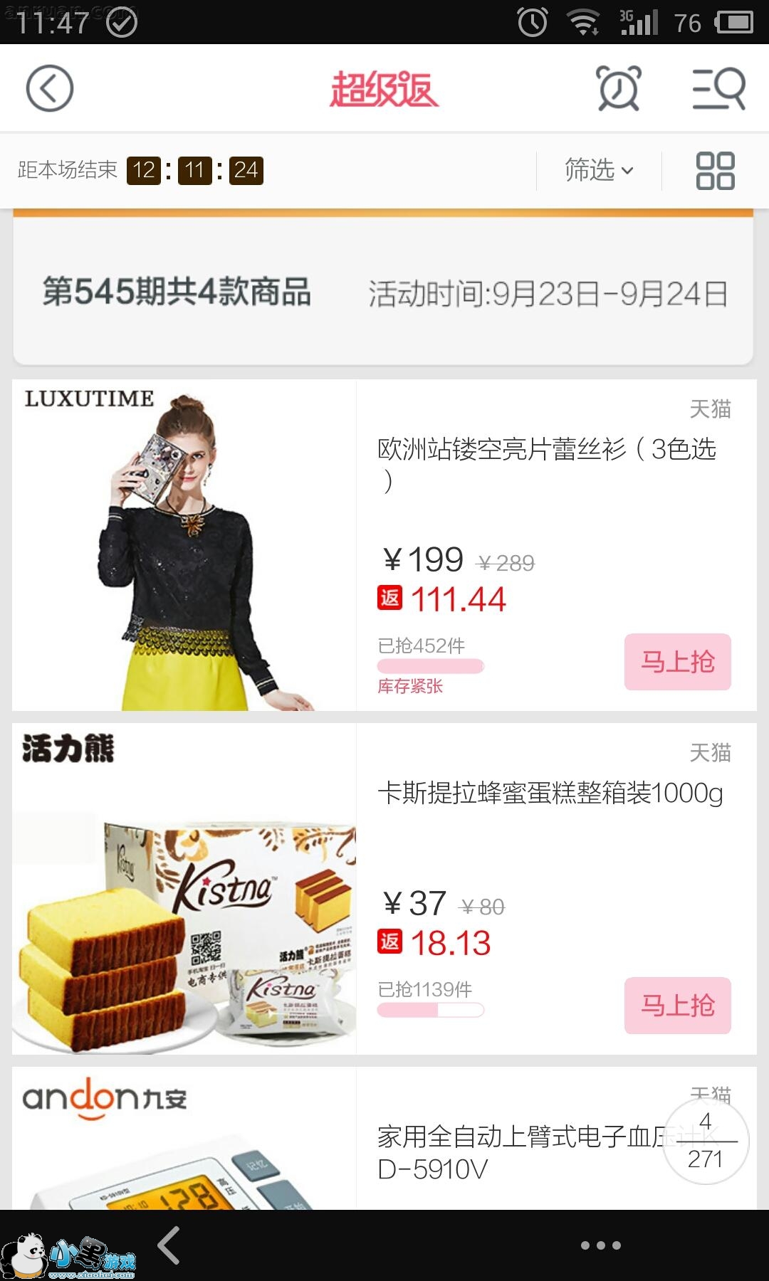 2、点开超级返后找到相印的商品,一般商品旁边会标识出正常的购买价格以及购买后返利金额,大家可以根据自己的需要购买相应的商品。