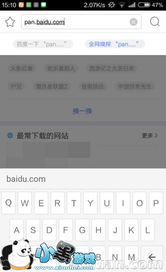 2、然后打开迅雷手机客户端,输入pan.baidu.com然后登陆自己的百度云账号