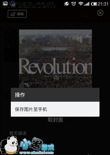 5、在封面上长按,即可出现【保存图片至手机】选项,此时点击保存即可。