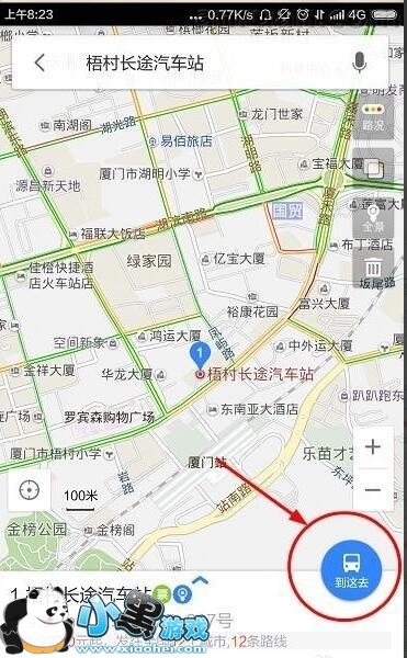 4、点击搜索以后,会在地图上检索出我们要到达的目的地,接下来点击地图中的到这去。