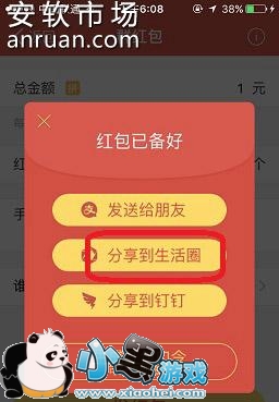 4.接着按照提示输入支付宝支付密码,再点击“分享到生活圈”即可将红包发到生活圈了,打开生活圈就能看到刚才发的红包了,如图: