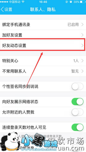 三、然后点击联系人、隐私。然后就可以看到好友动态设置了。