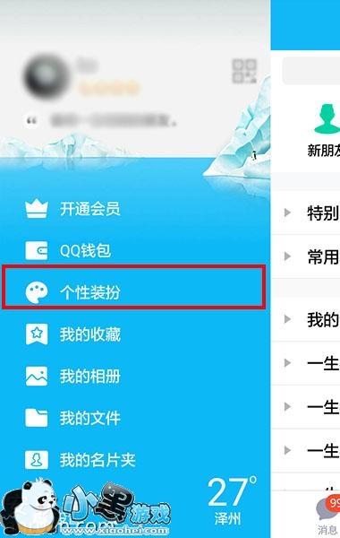 1、打开手机QQ,将手机QQ界面向左滑动,找到个性装扮并点击打开。