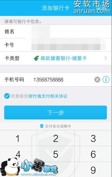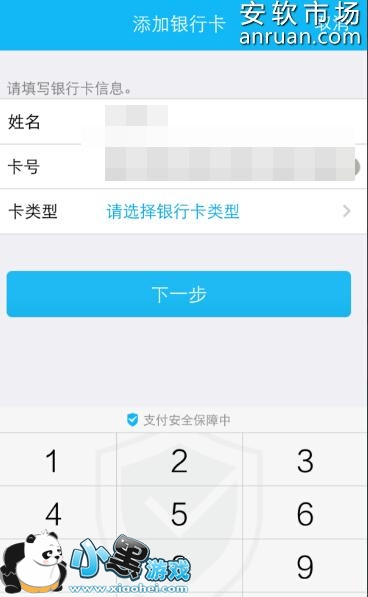 4、输入银行卡信息并选择银行卡类型。