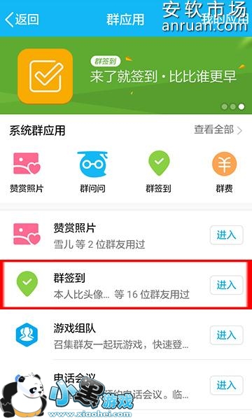 3、在群应用界面中找到群签到这个应用,点击进入。