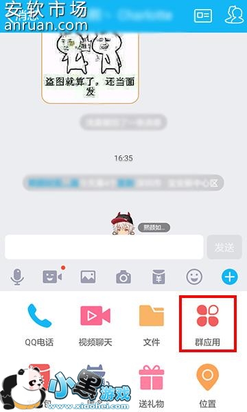 2、打开群聊界面后,点击聊天界面的右下角的“+”,找到群应用并点击打开。