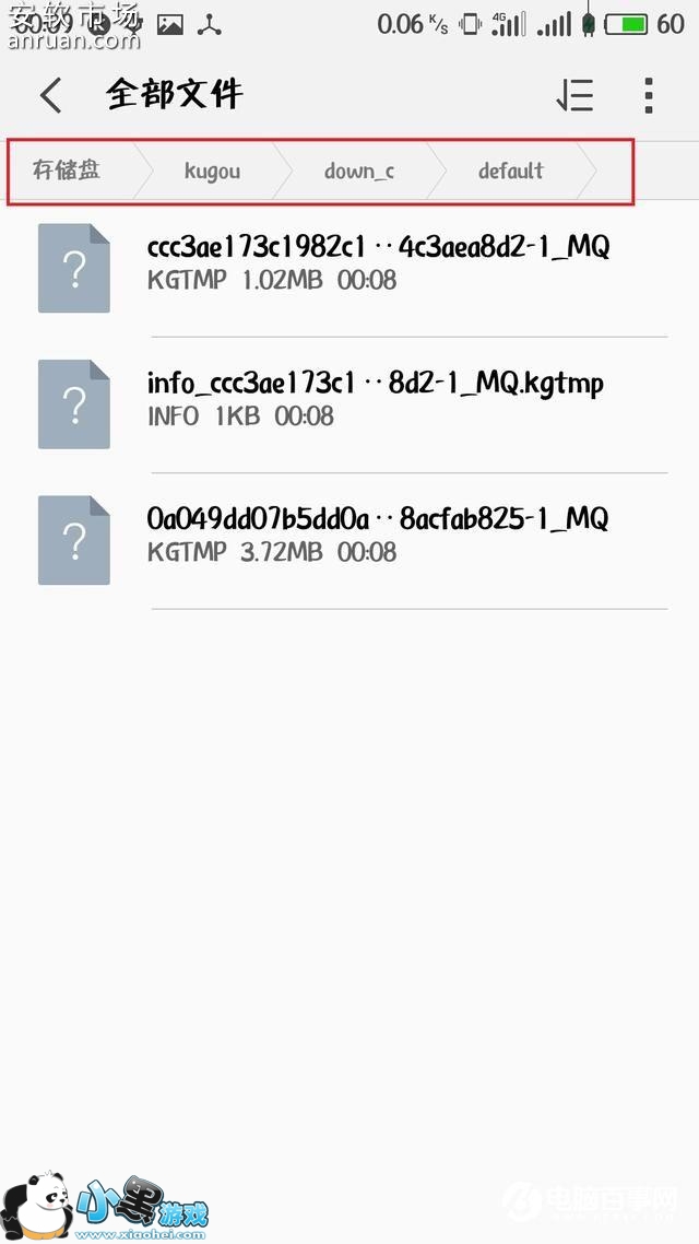 3、最后就是关键时刻:打开手机里面的文件管理器,依次打开文件夹Kugou——down_c——default,找到最大的一个文件,或者逐个试听(打开方式选“音乐”),一般都是最大的那个文件的。然后手机将该文件重命名,记得后缀要改成MP3,然后就可以成功保存自己的 音乐下载: