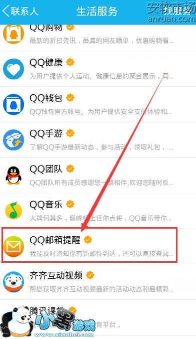 3、进入到生活服务界面以后,里面有很多服务功能大家可以选择,找到其中叫“QQ邮箱提醒”的功能打开,如下图。