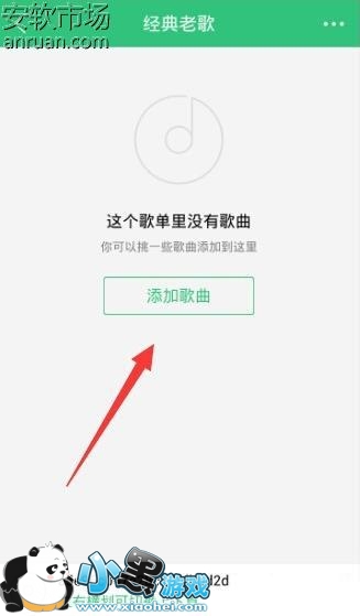 2、进入歌单界面以后,点击界面中间的“添加歌曲”功能按钮,如下图所示。