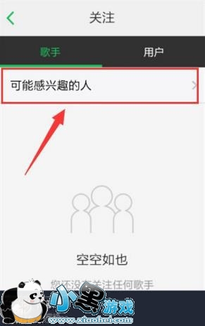 3、点击关注功能以后,会进入到关注的界面中,如果你之前没有关注歌手,一般界面中就会出现一个“可能感兴趣的人”这个功能选项,点击该选项进入。