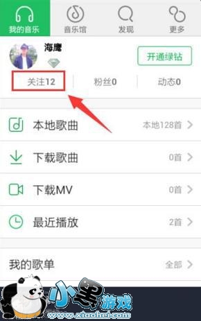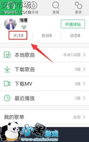 2、在主界面中点击我的音乐这个功能选项,然后会进入到个人中心界,,在自己的QQ音乐个人中心头像下面就会有一个“关注”的功能选项,如下图。
