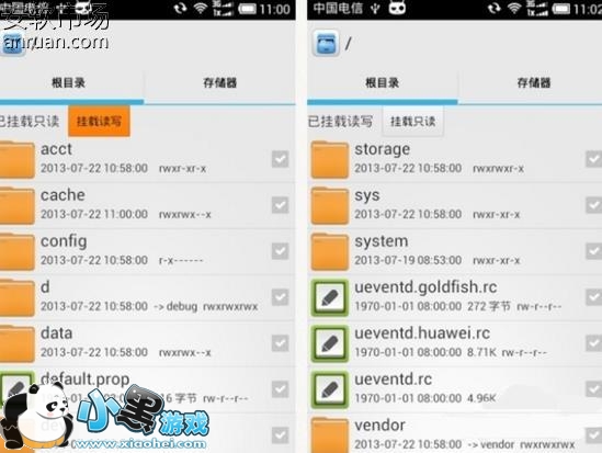 1、打开RE管理器客户端,进入RE管理器主界面,进入以后点击右上角的“挂载读写”按钮。点击之后,按钮的文字会变成“挂载只读”,这便证明挂载读写操作已启动。