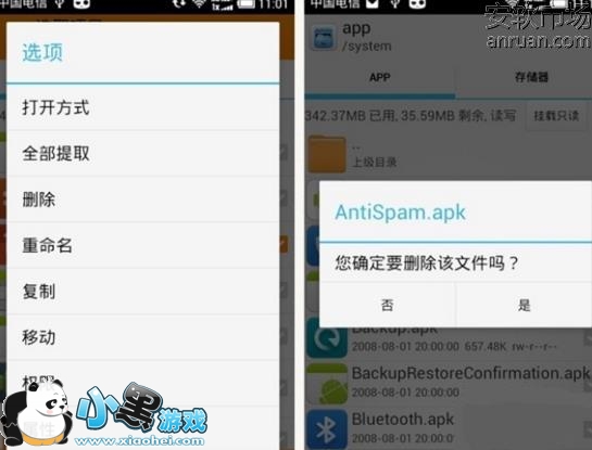 以上就是RE管理器删除手机系统自带软件的方法,如果大家手机非常卡实在是受不了的话,可以用这个软件给自己的手机瘦瘦身,但是删除的时候一定要记得先备份!一定要记得先备份!一定要记得先备份!重要的事情说三遍。