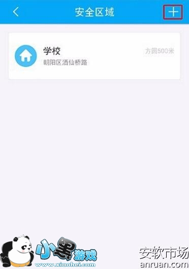 2、点击进入后,在安全区域功能右上角有一个“+”的功能,点击“+“就可以添加新的安全区域了,如下图。