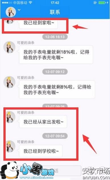 5、安全区域到达离开提醒消息都可以在在儿童卫士客户端的”联系“页面看得到。